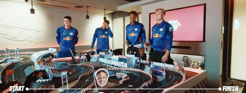 Ein weiteres Highlight ist der Einsatz unsere Rennaction-App. Über ein iPad werden Rundenzeiten dargestellt und echte Motorgeräusche dröhnen aus den Lautsprechern. Beim Durchrauschen der Start/Zielgeraden ertönt laut das voreingestellte Motorgeräusch des jeweiligen Fahrzeugs. Ein echter Gänsehautmoment. Außerdem nennt der virtuelle Rennsprecher den Namen des schnellsten Fahrers. Am Ende wird dann über eine Grafik der Sieger mit seinem Bild auf dem Treppchen gekührt.